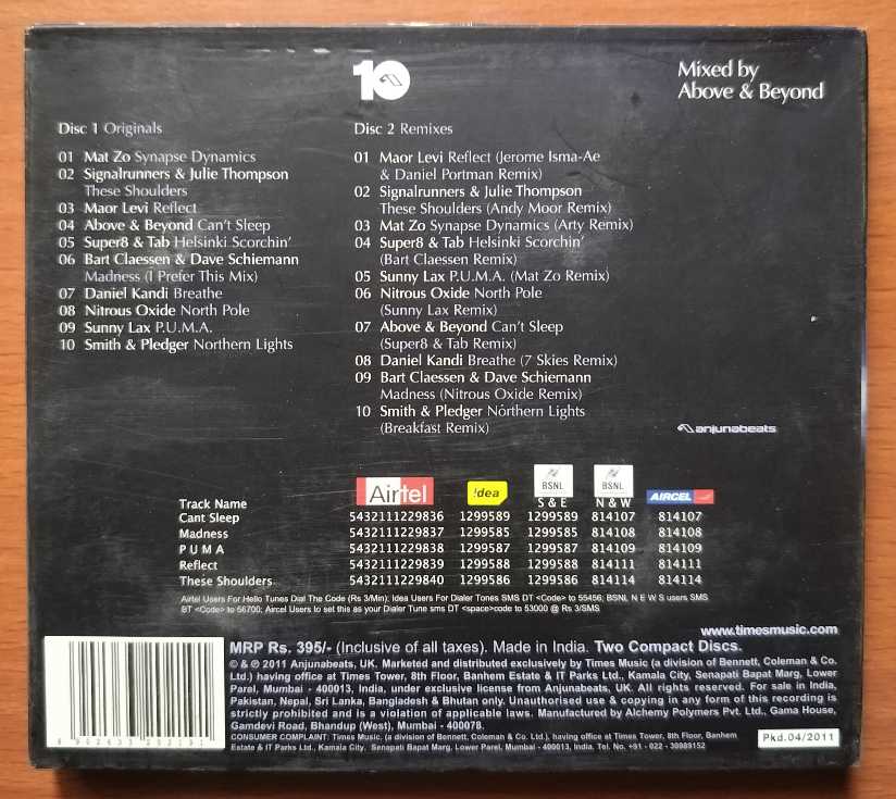 10 YEARS OF ANJUNABEATS MIXED BY ABOVE & BEYOND – Electronic Album 2CD Pack Audio Cd