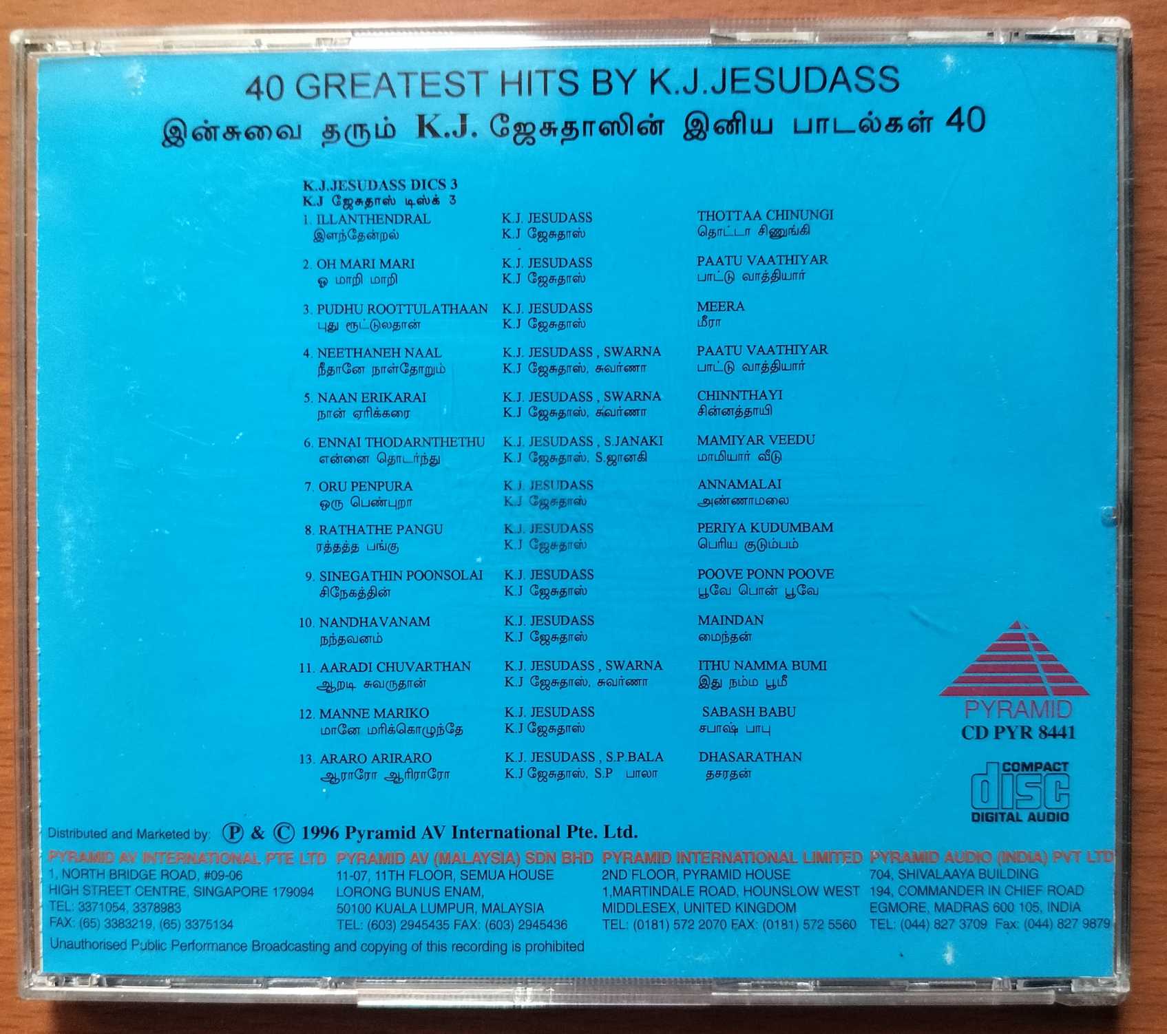 40 GREATEST HITS OF K.J. JESUDAS DISC. 3 – Imported Collection Tamil Audio Cd