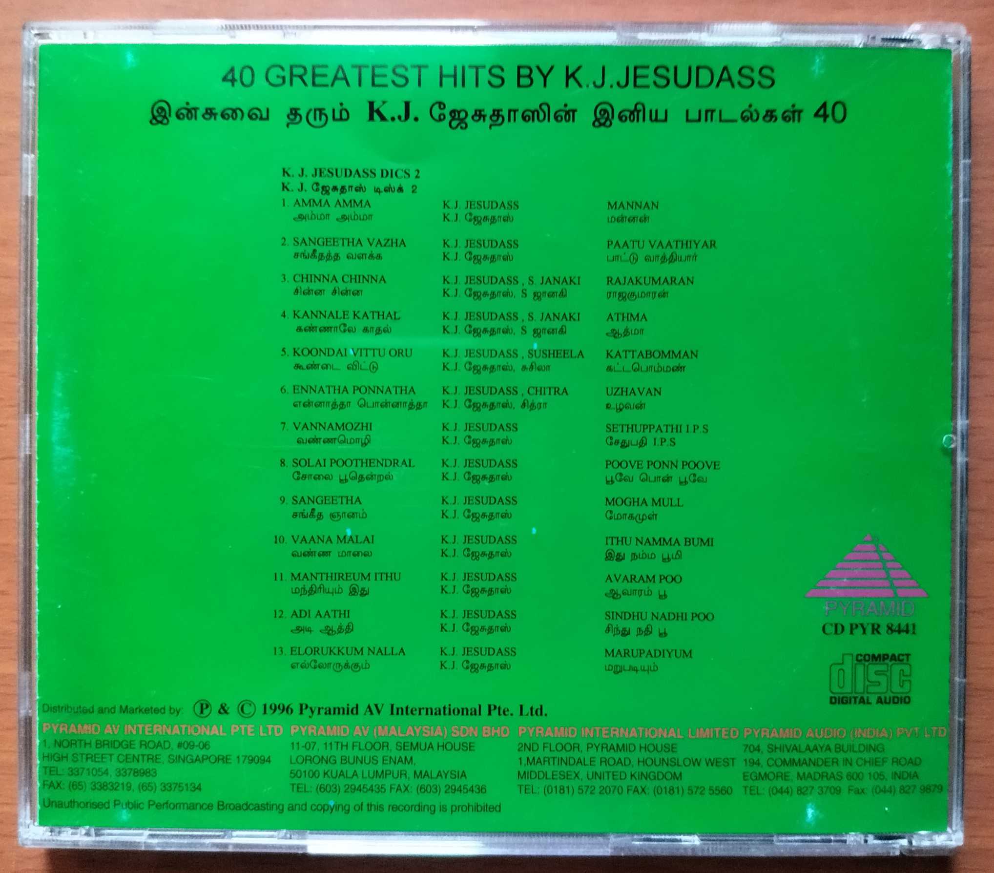 40 GREATEST HITS OF K.J. JESUDAS DISC. 2 – Imported Collection Tamil Audio Cd