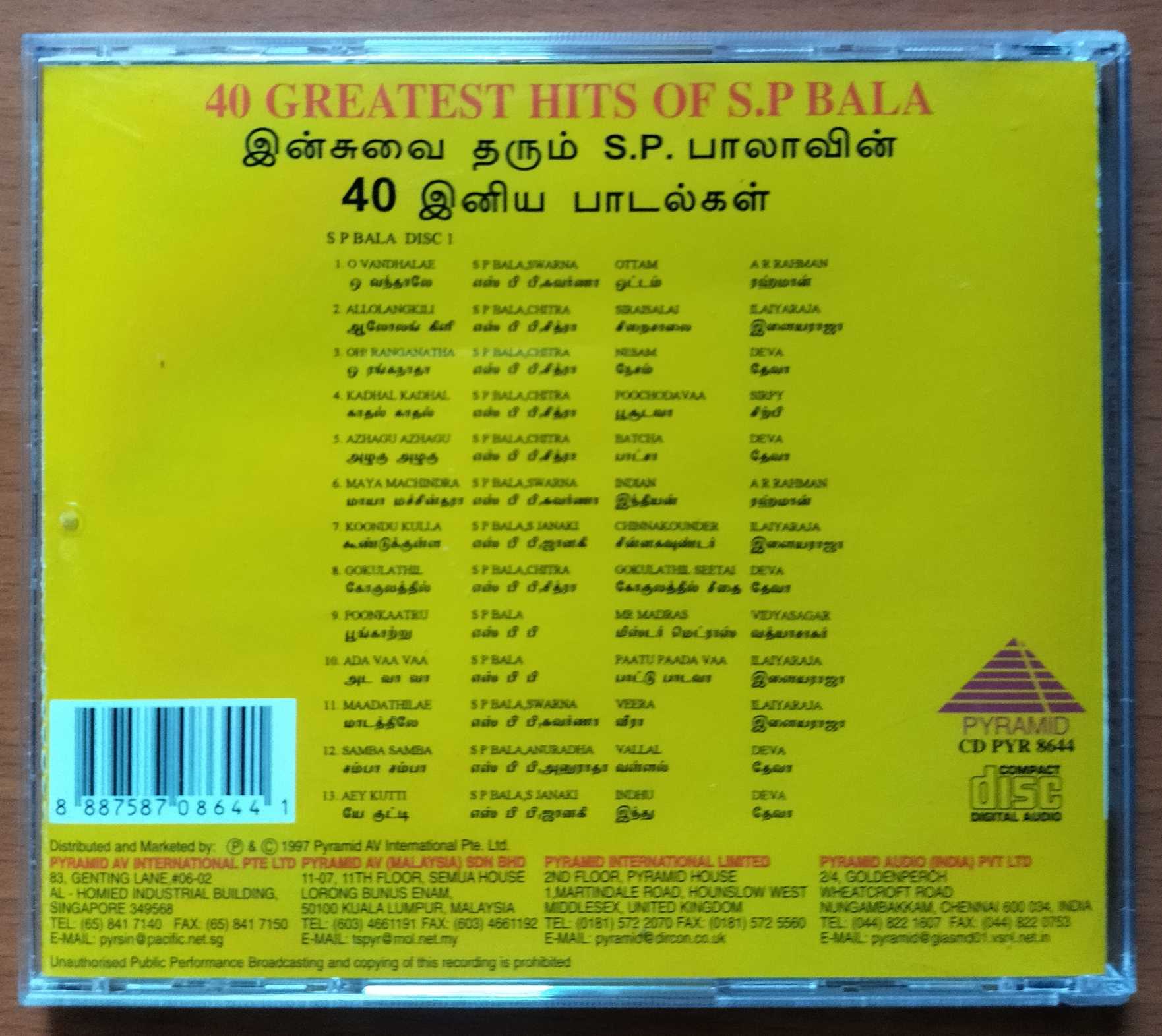 40 GREATEST HITS OF S.P. BALA DISC. 1 – Imported Tamil Collection Audio Cd