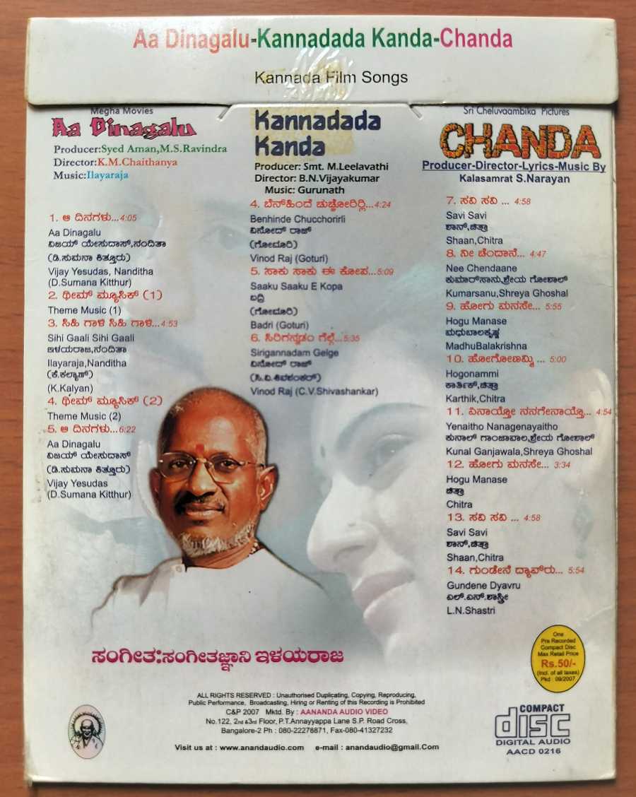 AA DINAGALU / KANNADADA KANDA / CHANDA – Ilaiyaraaja Kannada Film Audio Cd