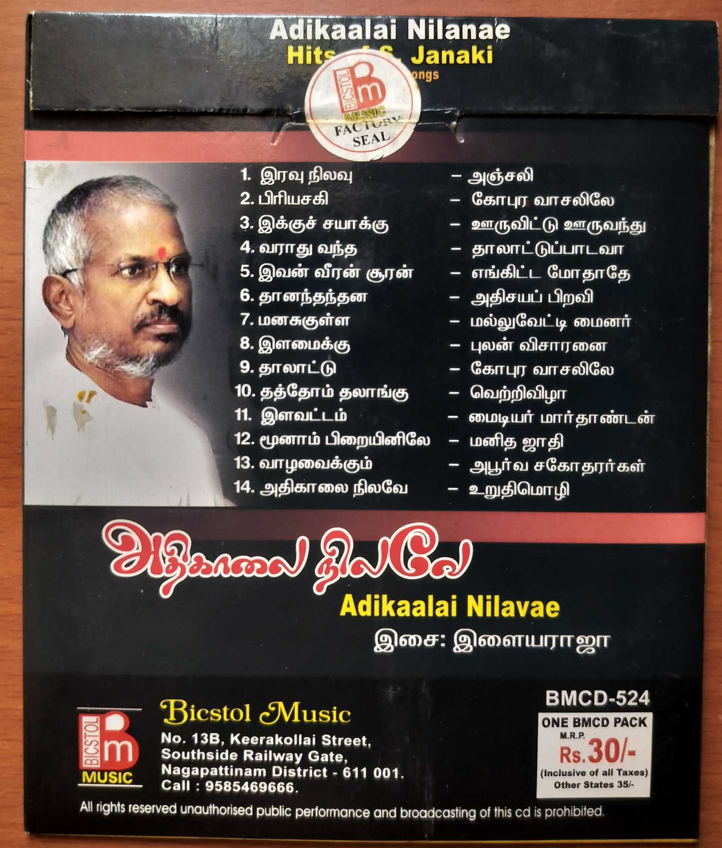 Description : Ilaiyaraaja Tamil Audio Cs