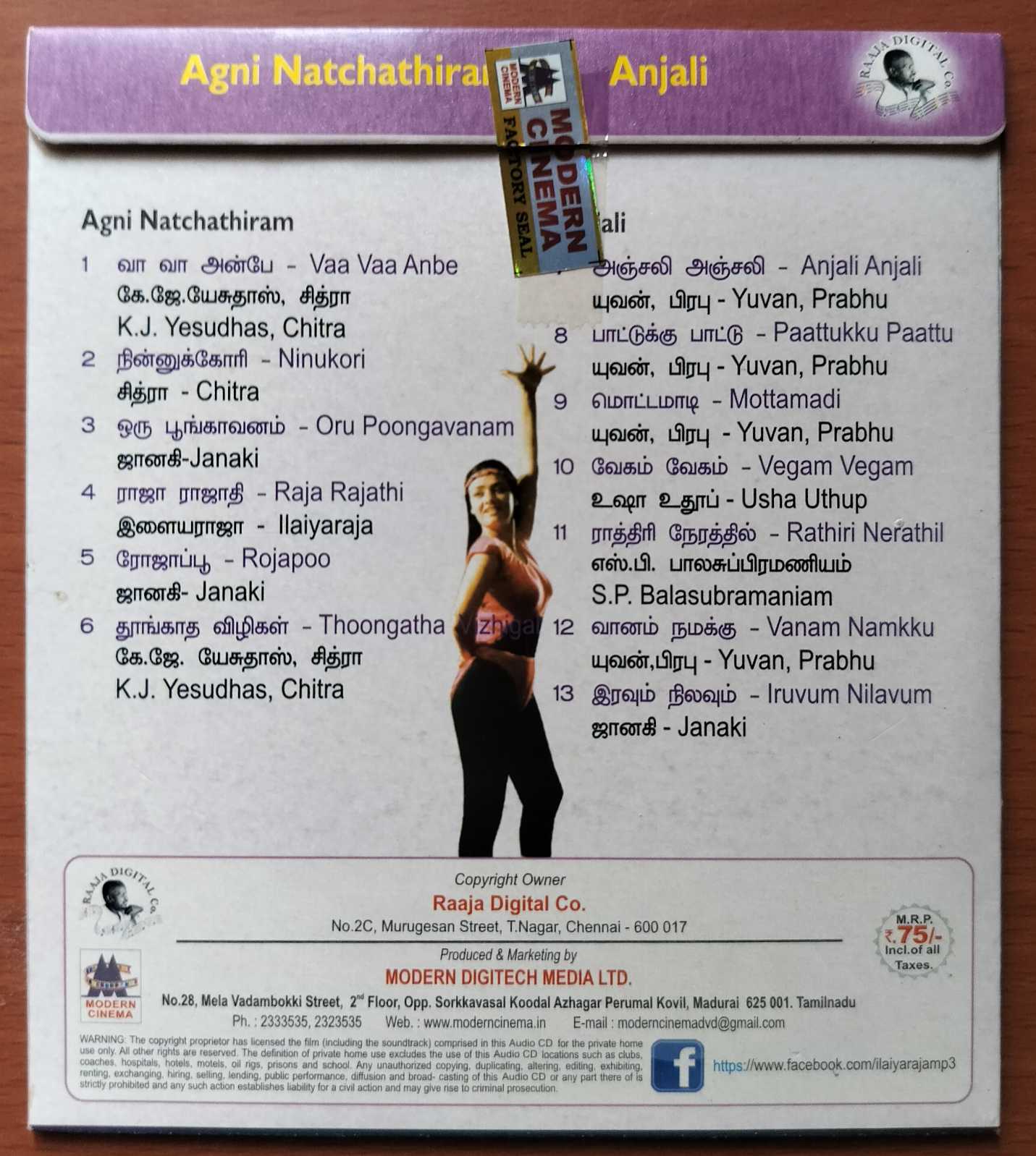 AGNI NATCHATHIRAM / ANJALI – Ilaiyaraaja Tamil Audio Cd