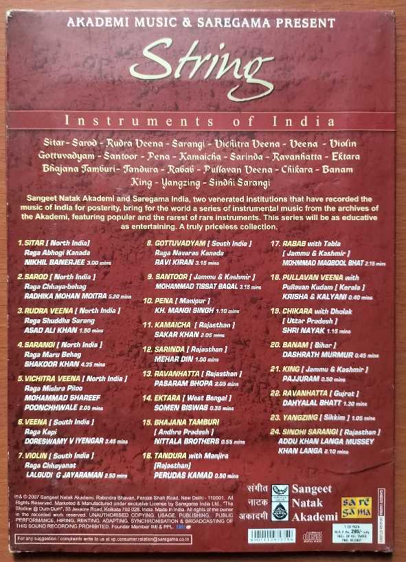 AKADEMI MUSIC & SAREGAMA PRESENT INSTRUMENTAL OF INDIA – Indian Instrumental Premium Edition Audio Cd