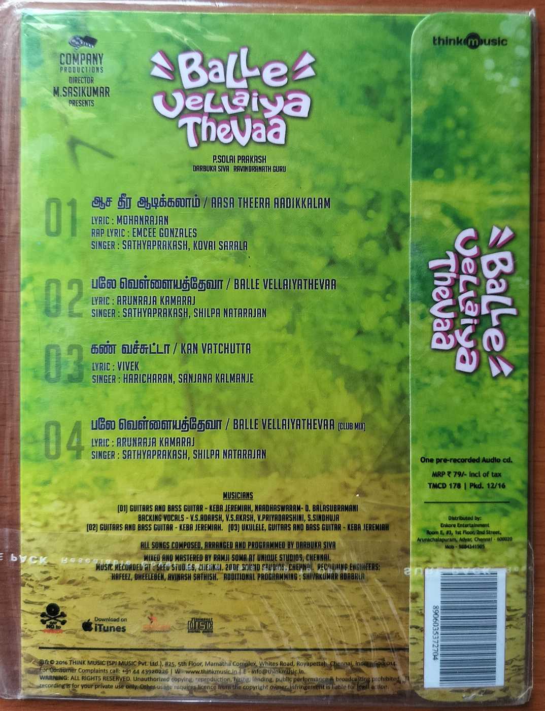 BALLE VELLAIYA THEVAA – Darbuka Siva Tamil Audio Cd (FACTORY SEALED PACK)