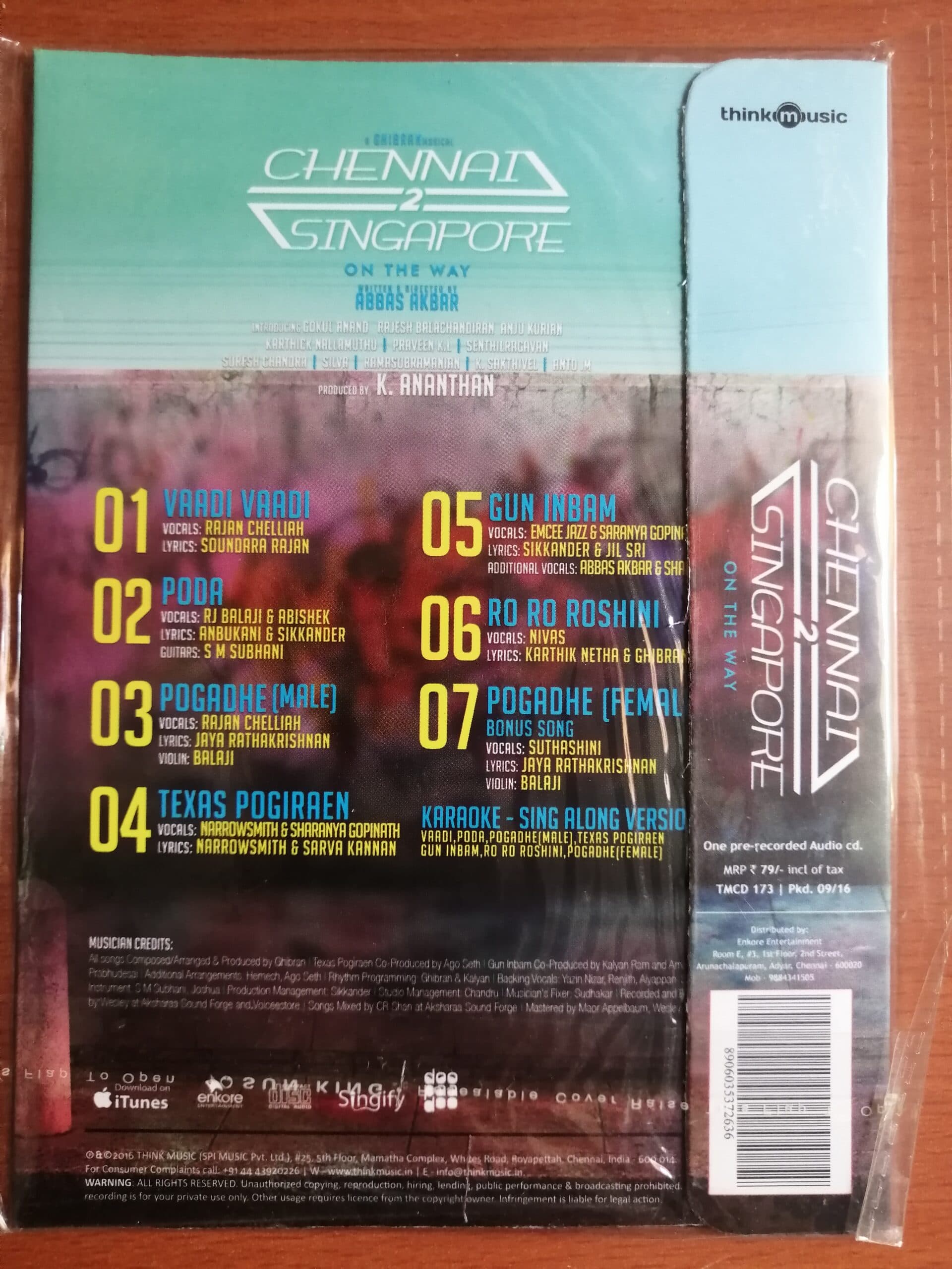 CHENNAI 2 SINGAPORE – Ghibran Tamil Audio Cd (FACTORY SEALED PACK)