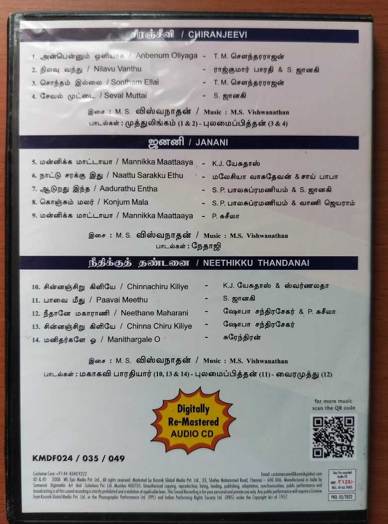 CHIRANJEEVI / JANANI / NEETHIKKU THANDANAI – M.S. Viswanathan Collection Audio Cd