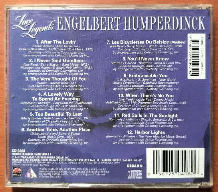 ENGELBERT HUMPERDINCK LOVE LEGENDS – Imported Love Songs Album Audio Cd