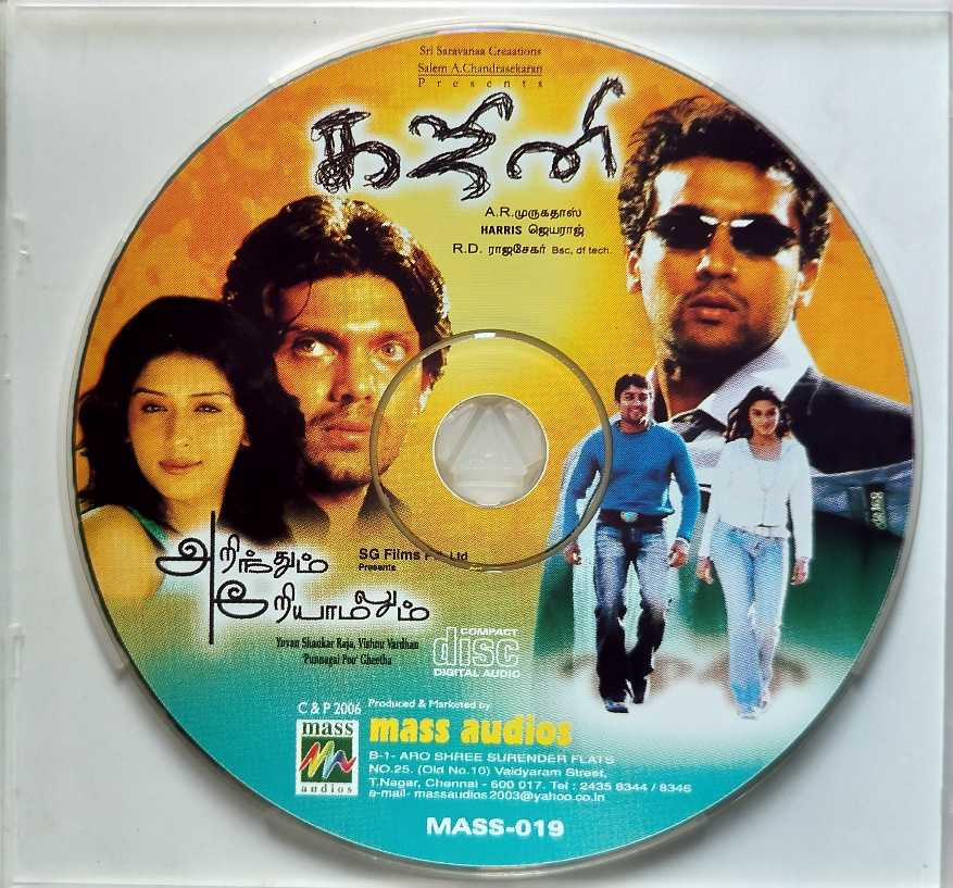 GHAJINI / ARINDHUMM ARIAMALUMM – Harris Jayaraj & Yuvan Shankar Raja Tamil Audio Cd
