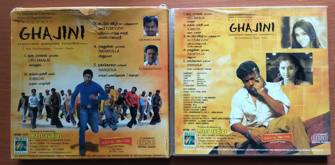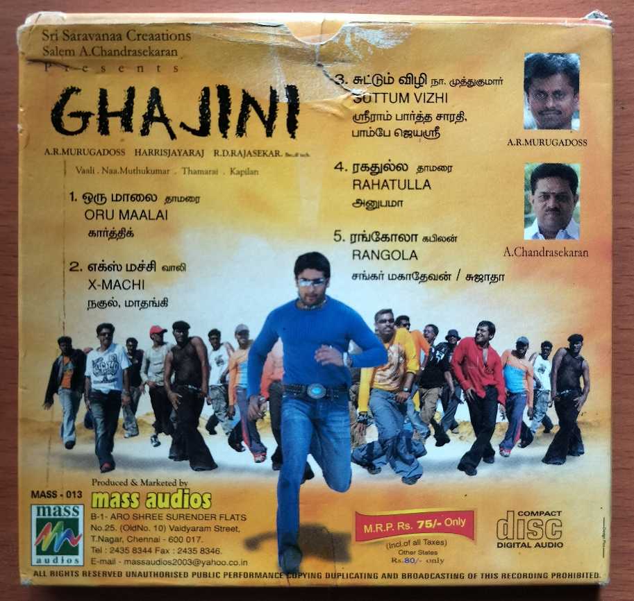 GHAJINI – Harris Jayaraj With Outer Cover Tamil Audio Cd