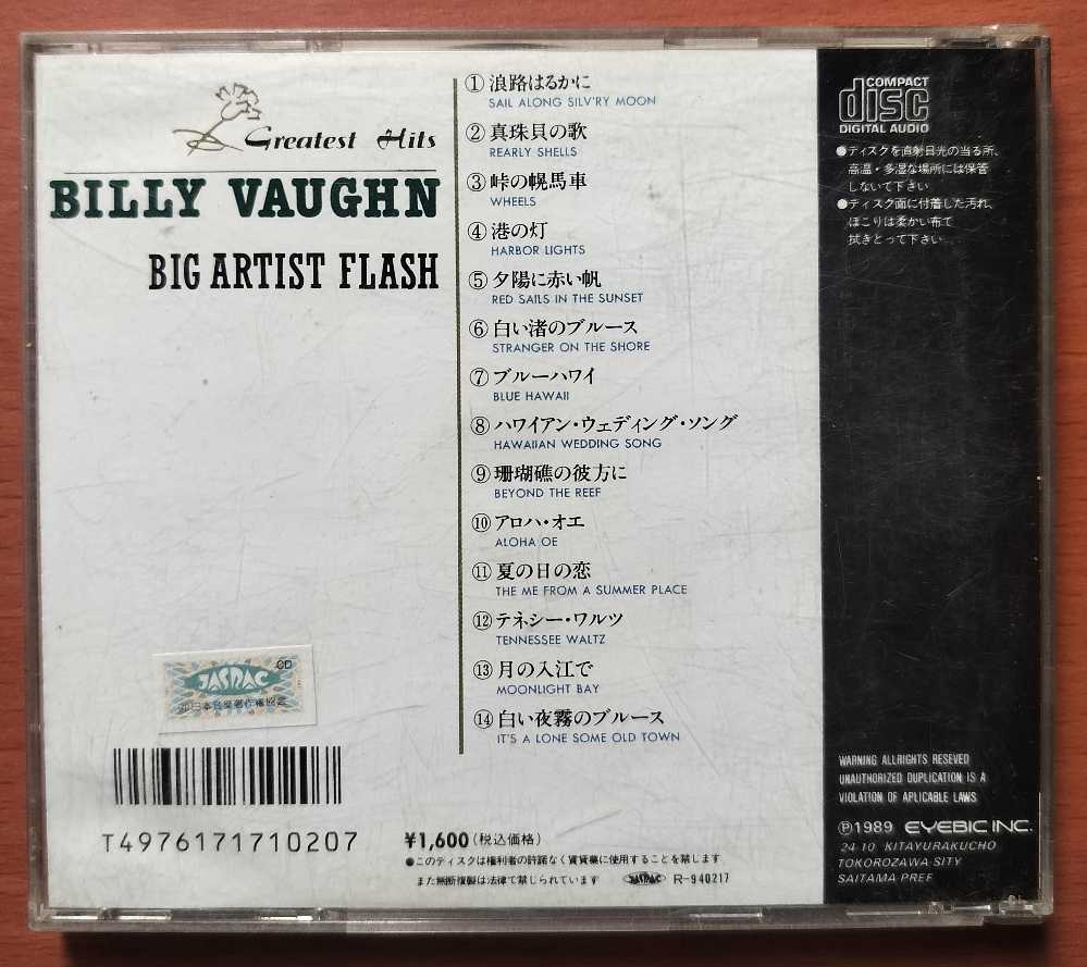 GREATEST HITS BILLY VAUGHN – Imported Jazz Album Audio Cd