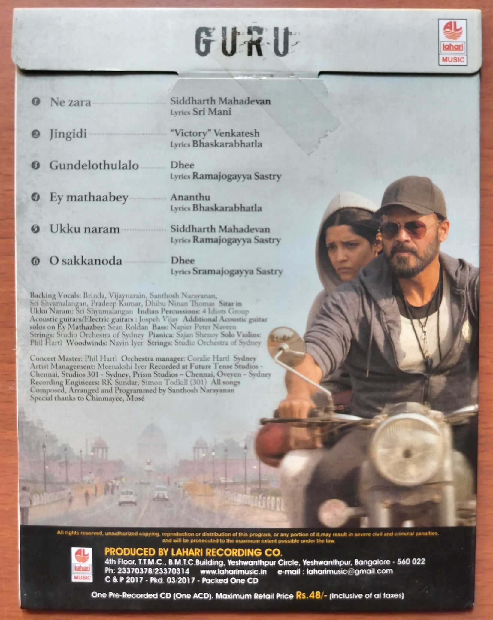 GURU – Santhosh Narayanan Telugu Audio Cd