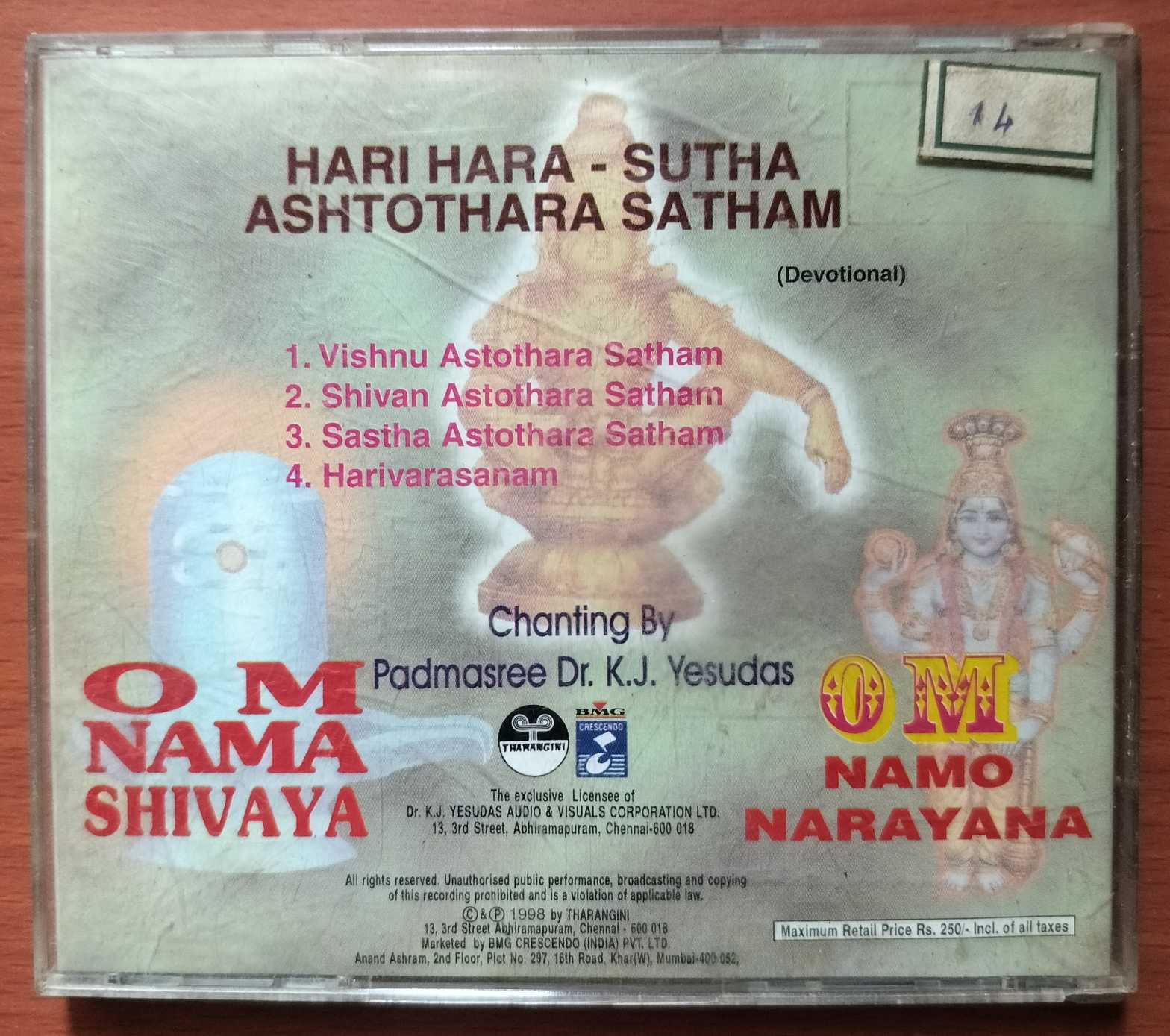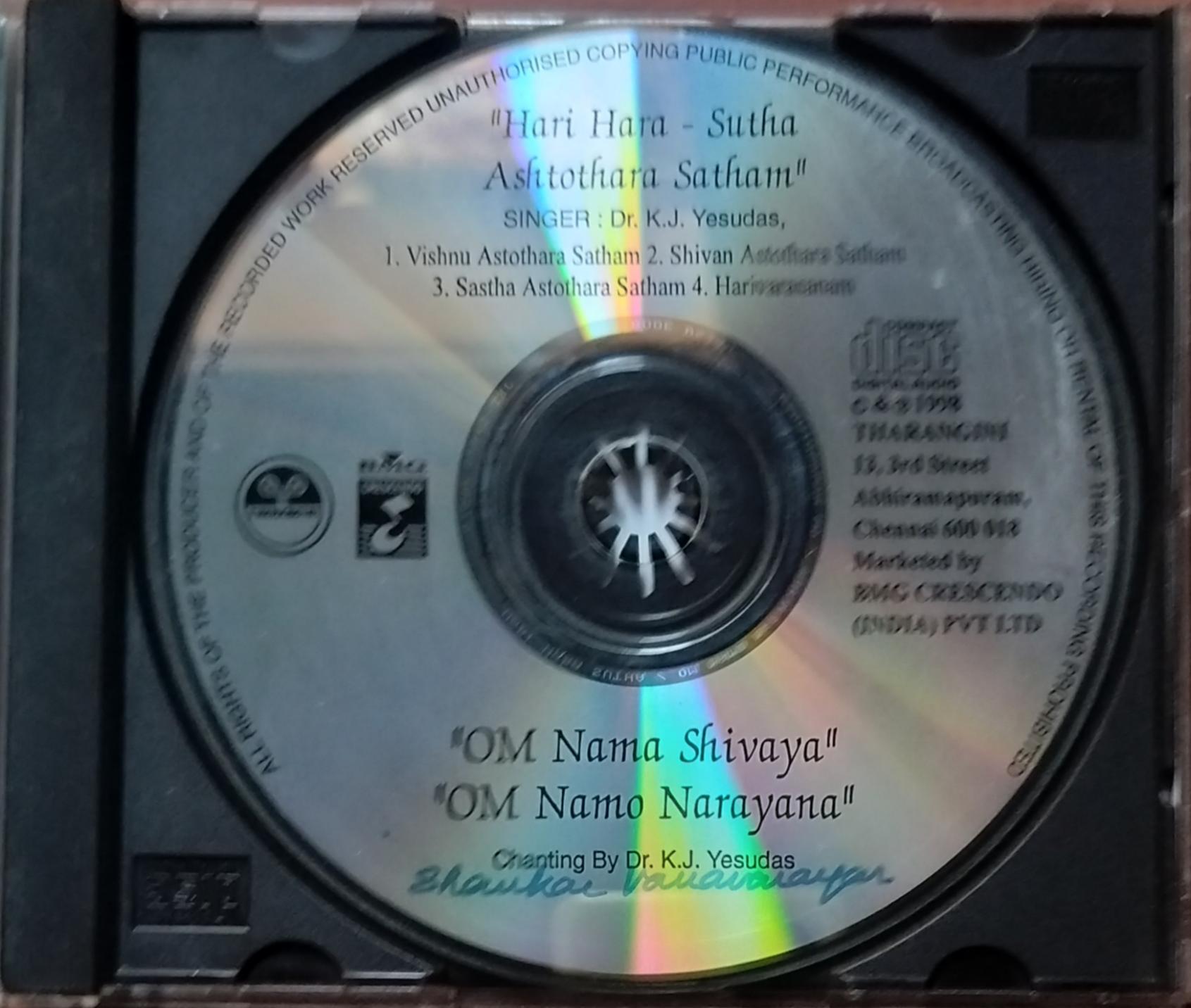 HARI HARA SUTHA ASHTOTHARA SATHAM OM NAMA SHIVAYA OM NAMO NARAYANA = DR. K.J. Yesudas Devotional Audio Cd