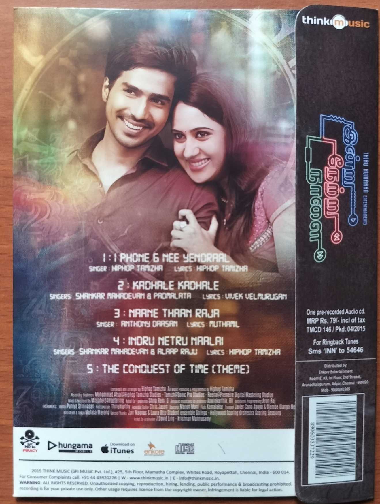 INDRU NETRU NAALAI – Hiphop Tamizha Tamil Audio Cd