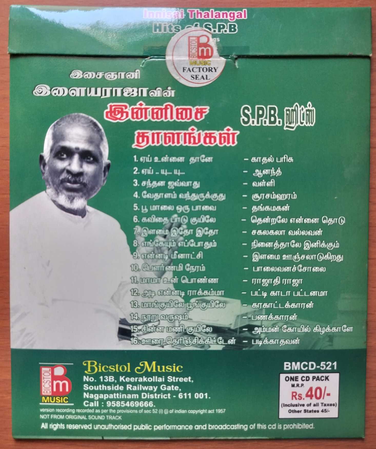 INNISAI THALANGAL HITS OF S.P.B TAMIL FILM SONGS – Ilaiyaraaja Tamil Audio Cd