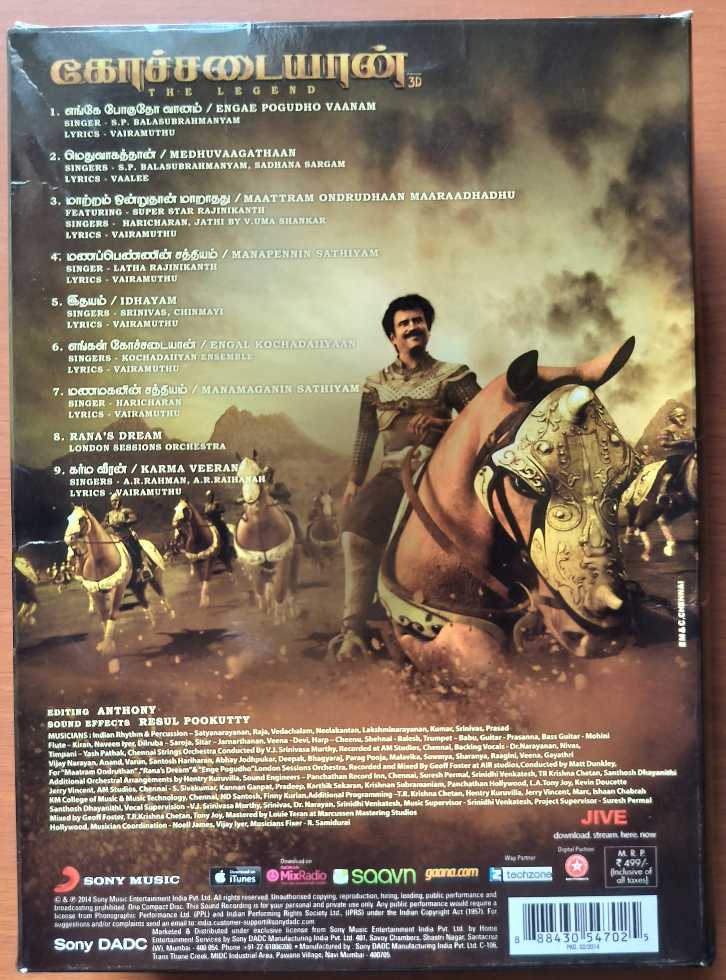 KOCHADAIYAAN – A.R. Rahman Special Premium Pack Edition Audio Cd (INCLUDE ONE MP3 & T-SHIRT)