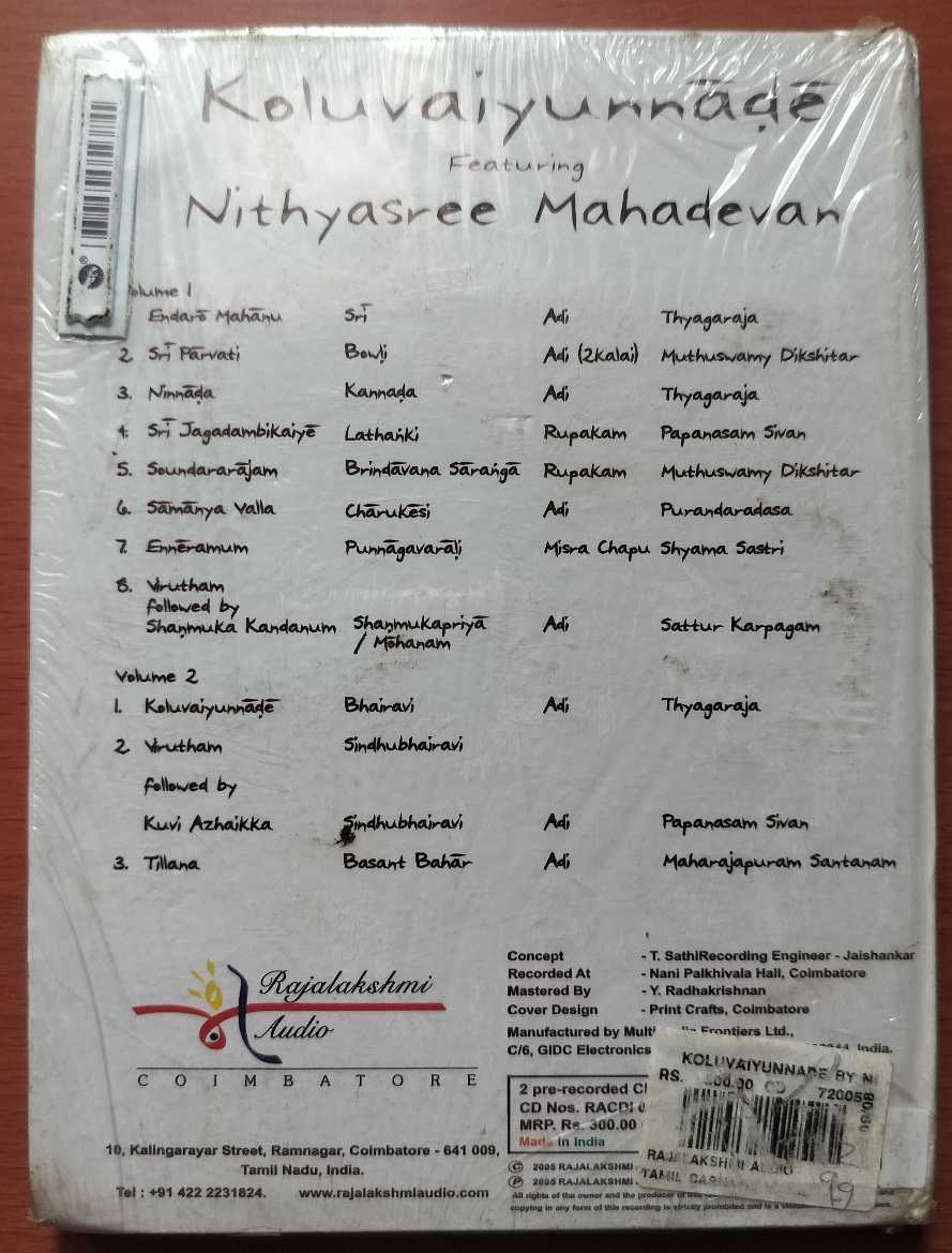 KOLUVAIYUNNADE – Nithyasree Mahadevan Classical 2CD Pack Audio Cd