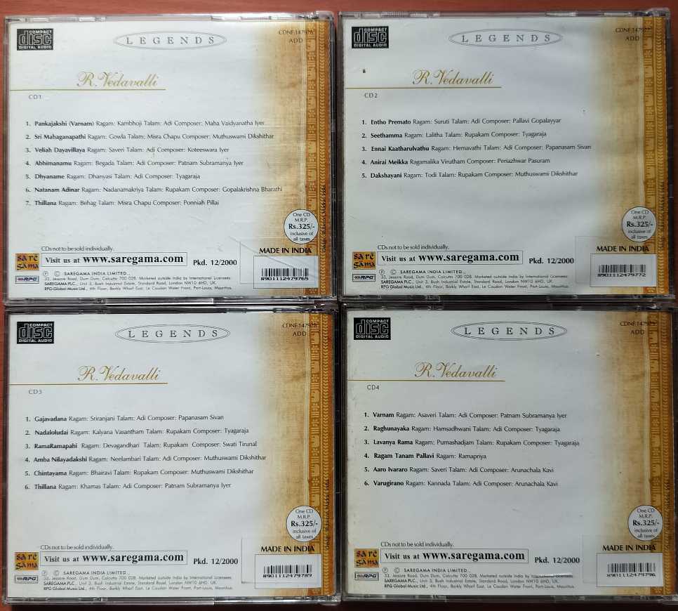 LEGENDS R. VEDHAVALLI – Carnatic Classical 5CD Pack Audio Cd