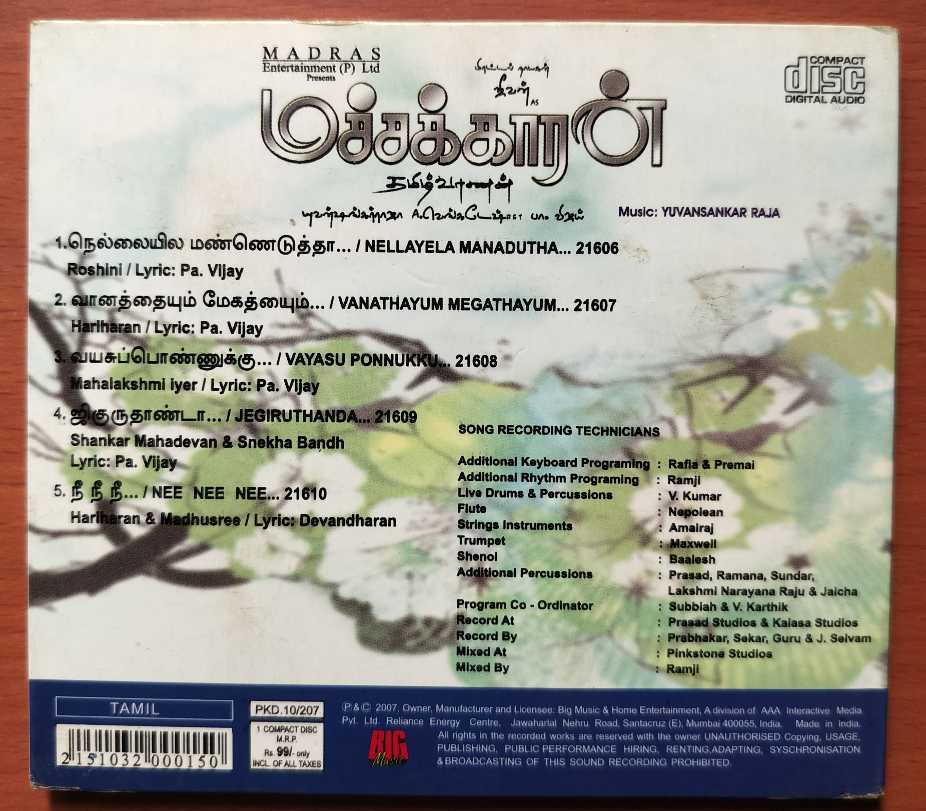 MACHAKAARAN – Yuvan Shankar Raja Tamil Audio CD