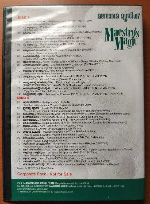 MAESTRO’S MAGIC MEMORABLE MALAYALAM FILM SONGS – Ilayaraja Malayalam 2CD Pack Audio Cd