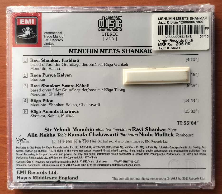 MEBUHIN MEETS SHANKAR – Indian Instrumental Audio Cd (FACTORY SEALED PACK)
