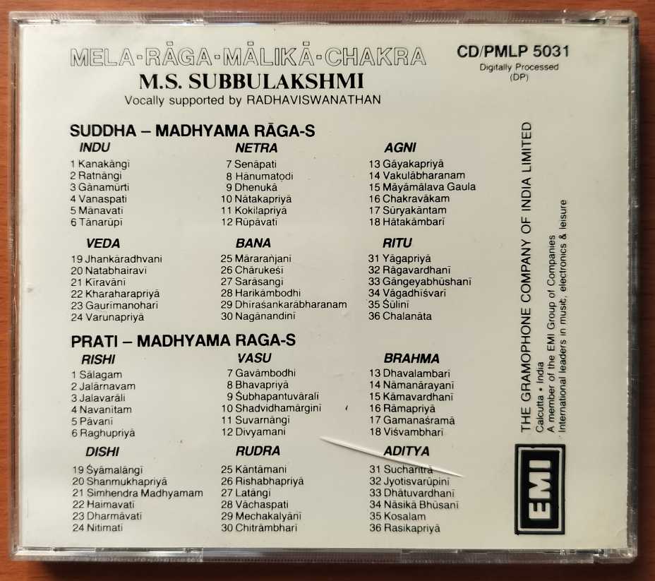 MELA RAGA MALIKA CHAKRA – Imported M.S. Subbulakshmi Classical Audio Cd