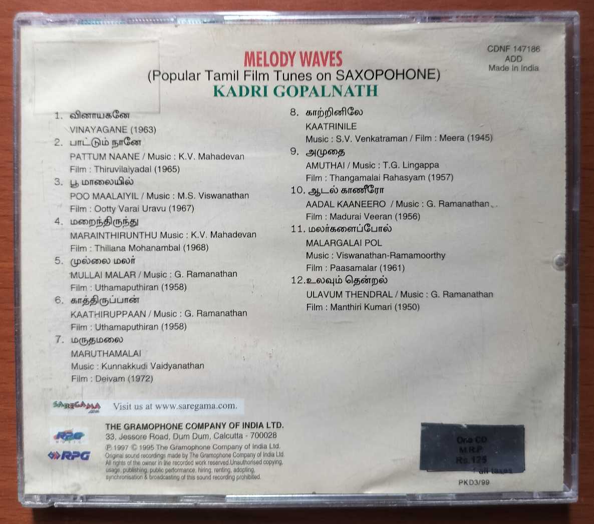 MELODY WAVES – Kadri Gopalnath Tamil Film Tunes On Saxopohone Audio Cd