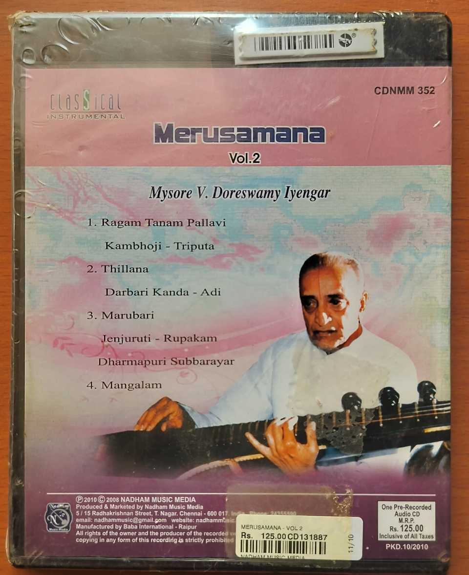 Home » Shop » MERUSAMANA VOL. 2 – Mysore V. Doreswamy Iyengar Classical Instrumental Audio Cd (FACTORY SEALED PACK)