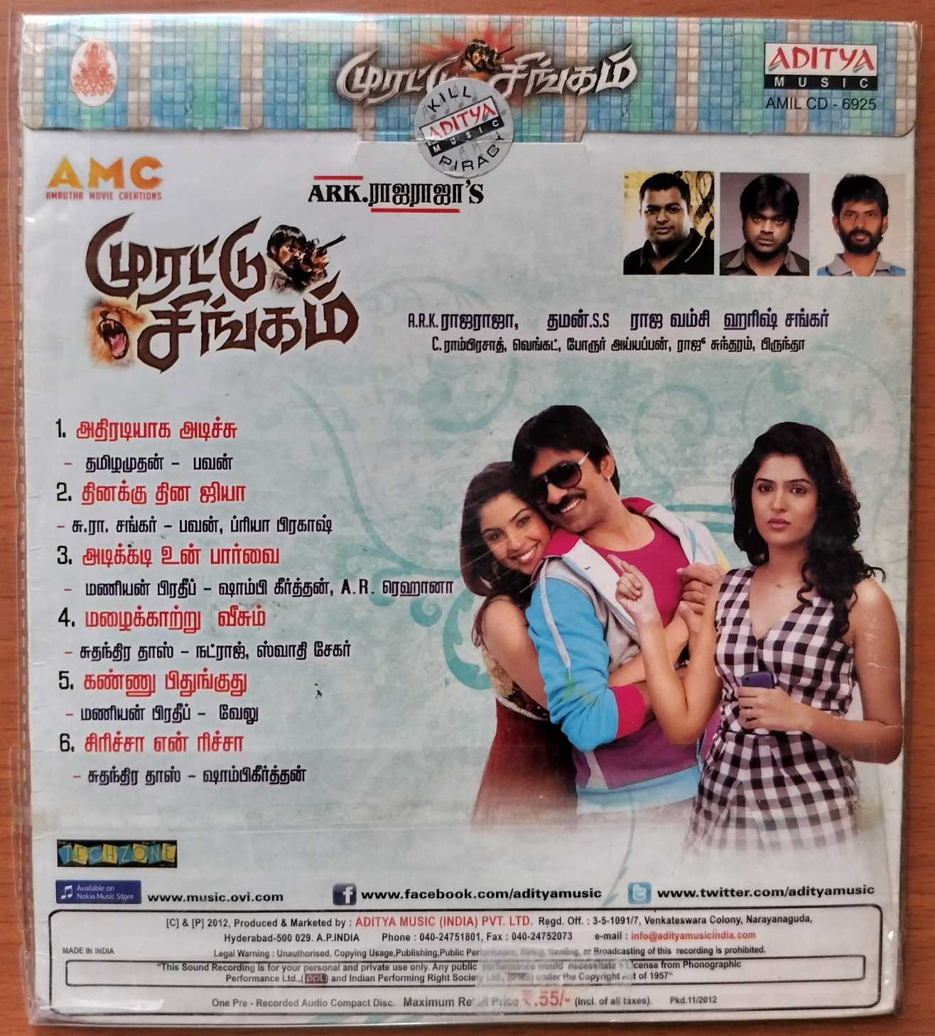 MURATTU SINGAM – Thaman S Tamil Audio Cd (FACTORY SEALED PACK)