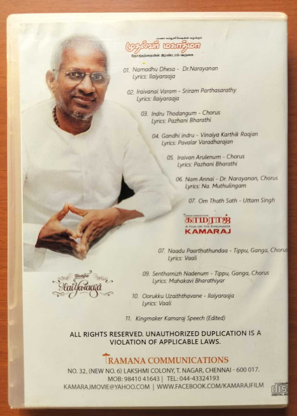 MUTHALVAR MAHATHMA / KAMARAJ – Ilayaraja Tamil Audio Cd