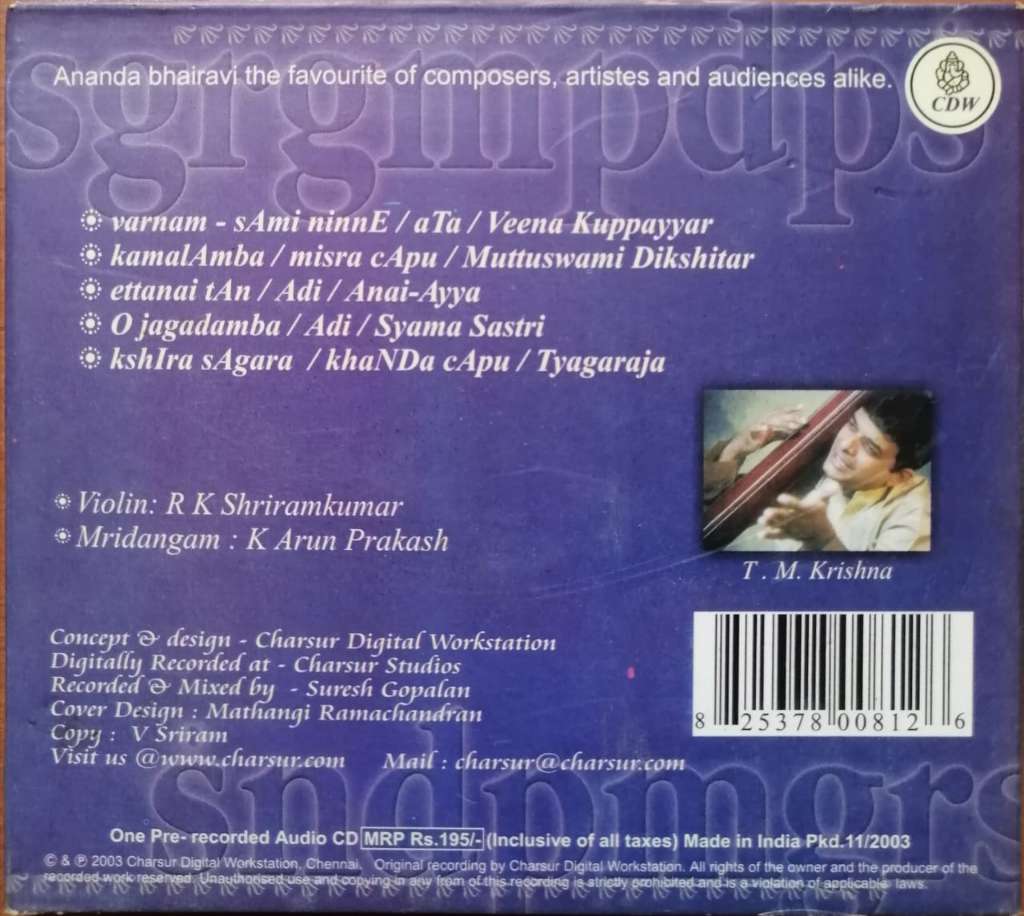 MYRIAD HUES OF ANANDABHAIRAVI – T. M. Krishna Carnatic Audio Cd