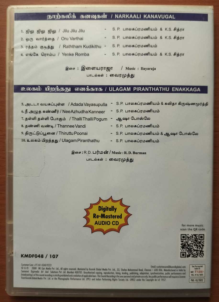 NARKAALI KANAVUGAL / ULAGAM PIRANTHATHU ENAKKAGA – Ilayaraja & R.D. Burman Tamil Audio Cd