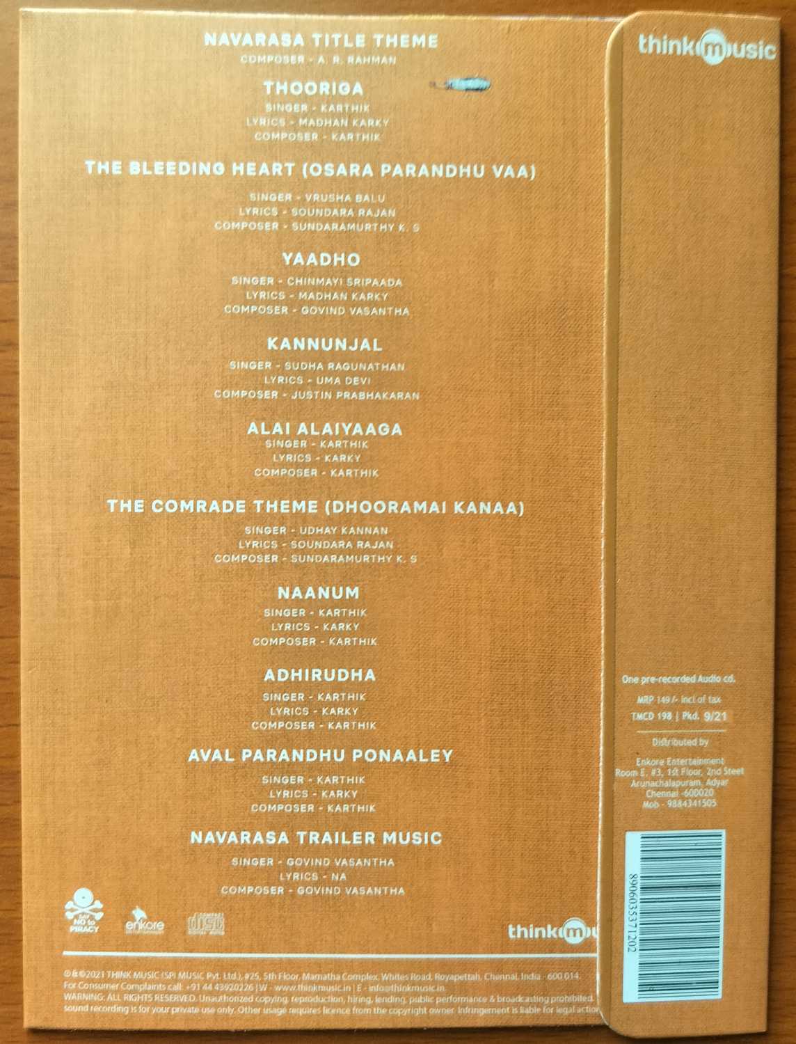 NAVARASA – A.R. Rahman & Santhaosh Narayanan Tamil Audio Cd