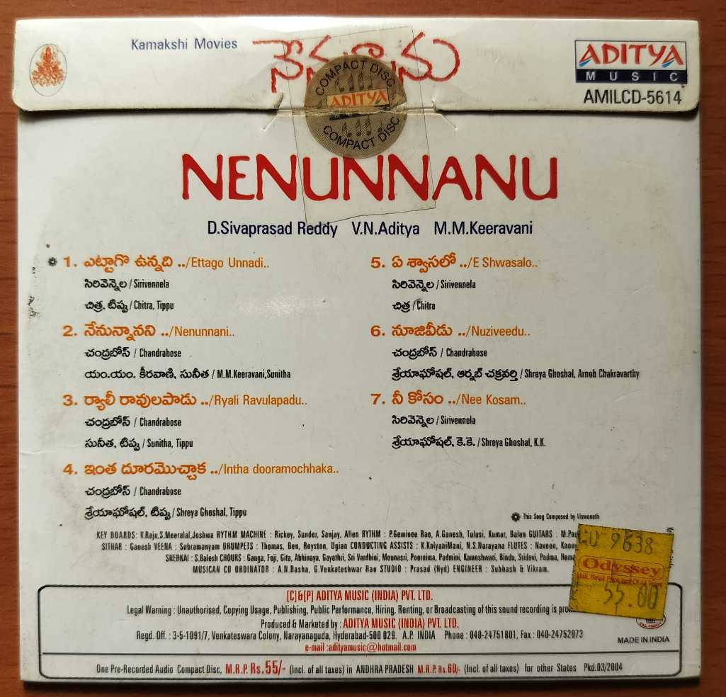 NENUNNANU – M.M. Keeravani Telugu Audio Cd (FACTORY SEALED PACK)