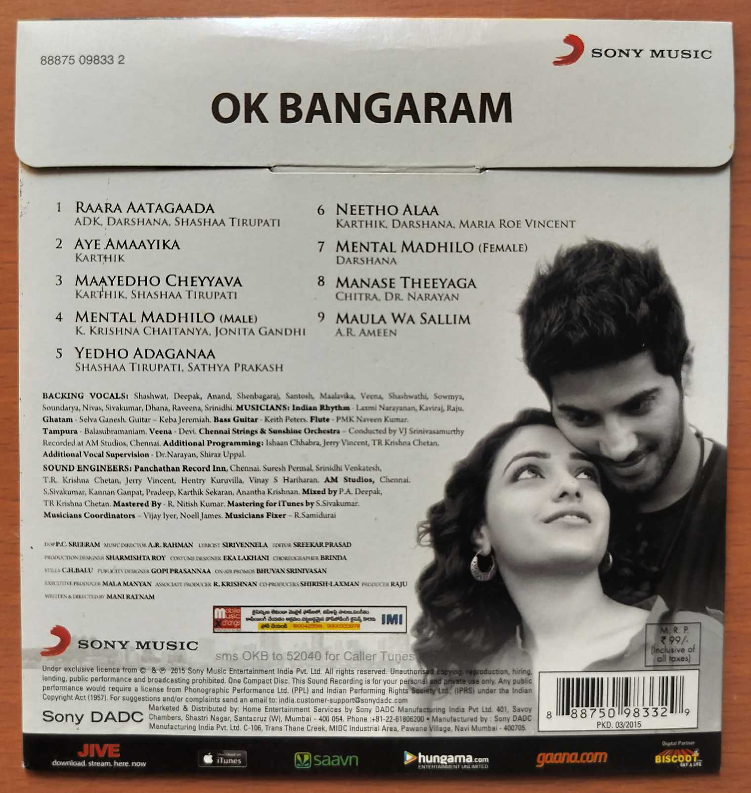 OK BANGARAM – A.R. Rahman Telugu Audio Cd