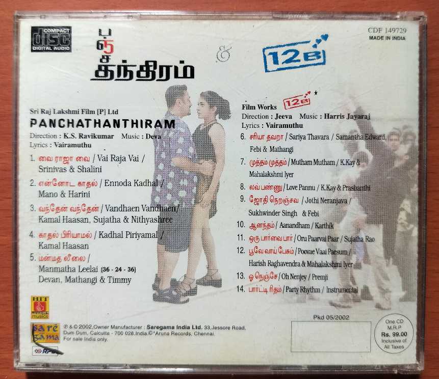 PANCHATHANTHIRAM / 12 B – Deva & Harris Jayaraj Extra Track Audio Cd