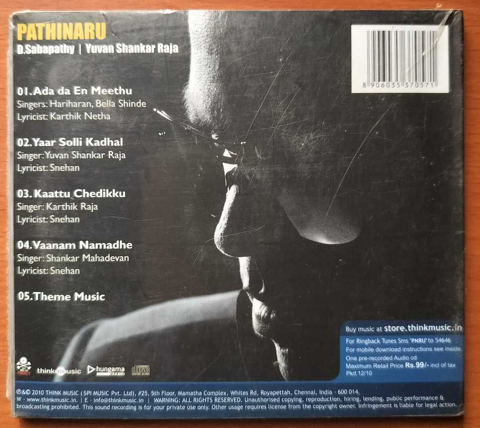 PATHINARU – Yuvan Shankar Raja Audio Cd (FACTORY SEALED PACK)