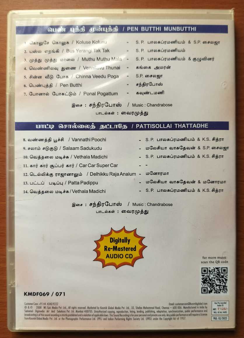 PEN BUTTHI MUBUTTHI / PATTISOLLAI THATTADHE – Chandrabose Tamil Audio Cd
