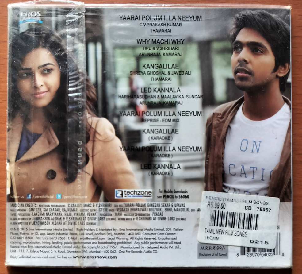 PENCIL – G.V. Prakash Kumar Tamil Audio Cd (FACTORY SEALED PACK)