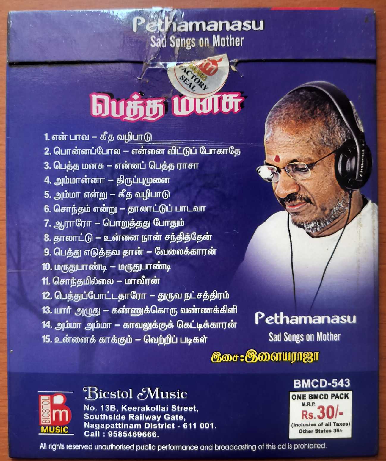 PETHAMANASU SAD SONGS ON MOTHER – Ilaiyaraaja Tamil Collection Audio Cd