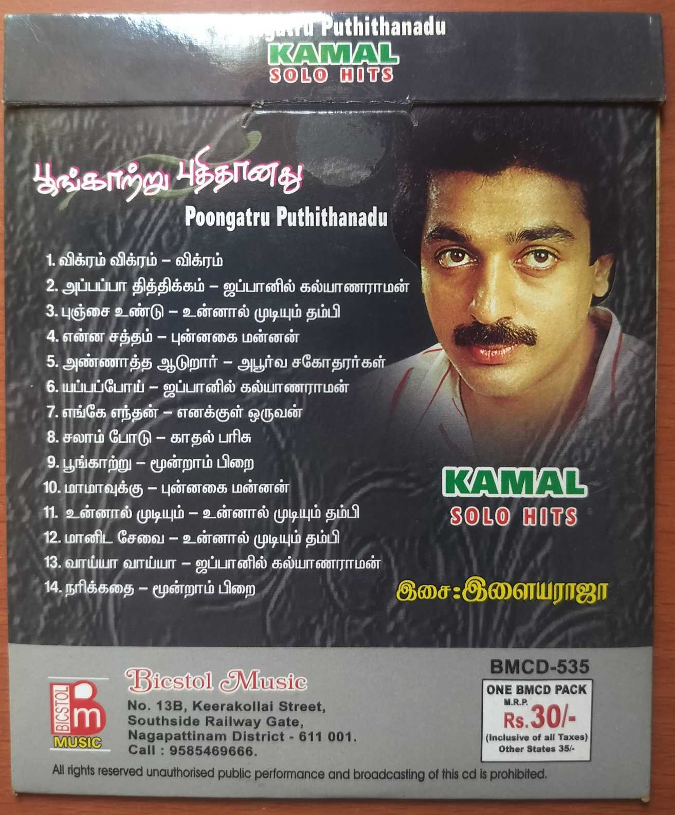 POONGATRU PUTHITHANADHU KAMAL SOLO HITS – Ilaiyaraaja Tamil Audio Cd