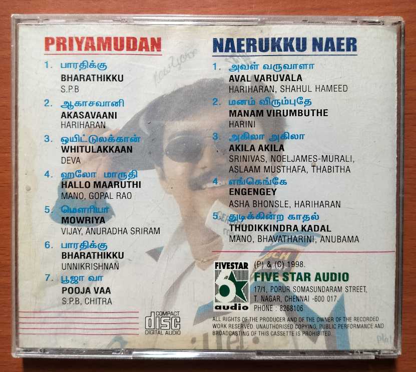 PRIYAMUDAN / NAERUKKU NAER – Deva Collection Tamil Film Audio Cd