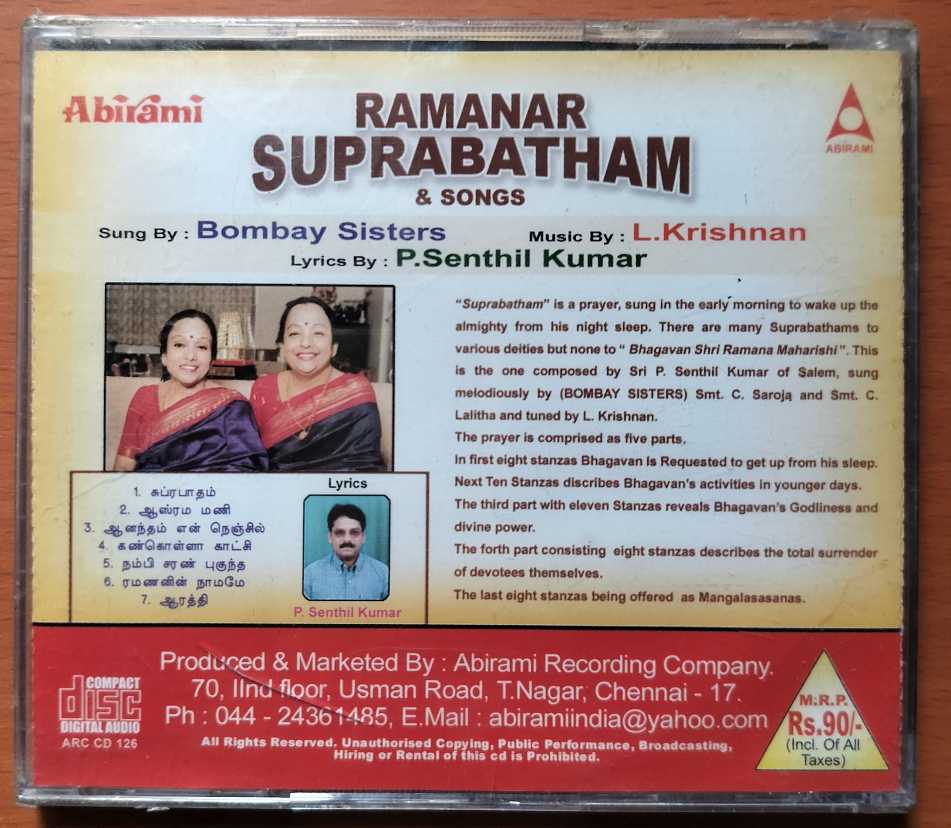 RAMANAR SUPRABATHAM & SONGS – Bombay Sisters Devotional Audio Cd (FACTORY SEALED PACK)