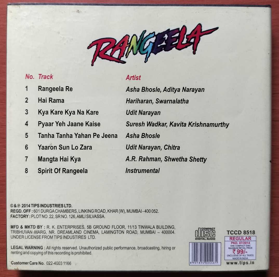 Home » Shop » RANGEELA – A.R. Rahman Hindi Audio Cd