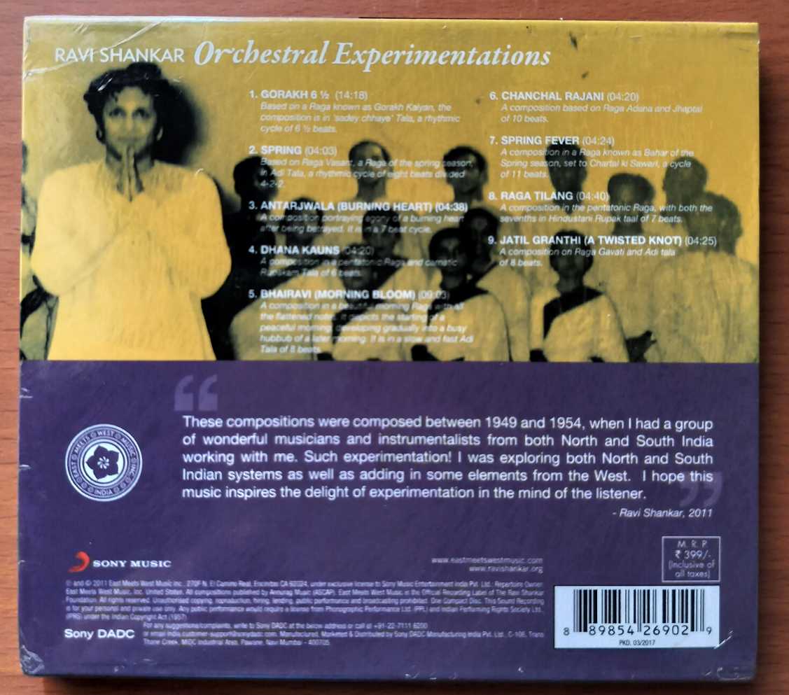 RAVI SHANKAR ORCHESTRAL EXPERIMENTATIONS NINE DECADES VOL. 3 – Indian Classical Audio Cd (FACTORY SEALED PACK)