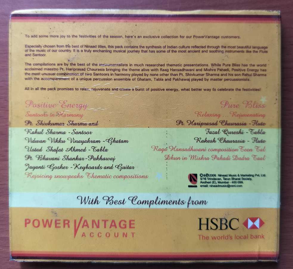 RHYTHM DIVINE PURE BLISS POSITIVE ENERGY – Hariprasad Chaurasia & Shivkumar Sharma Instrumental 2CD Pack Audio Cd