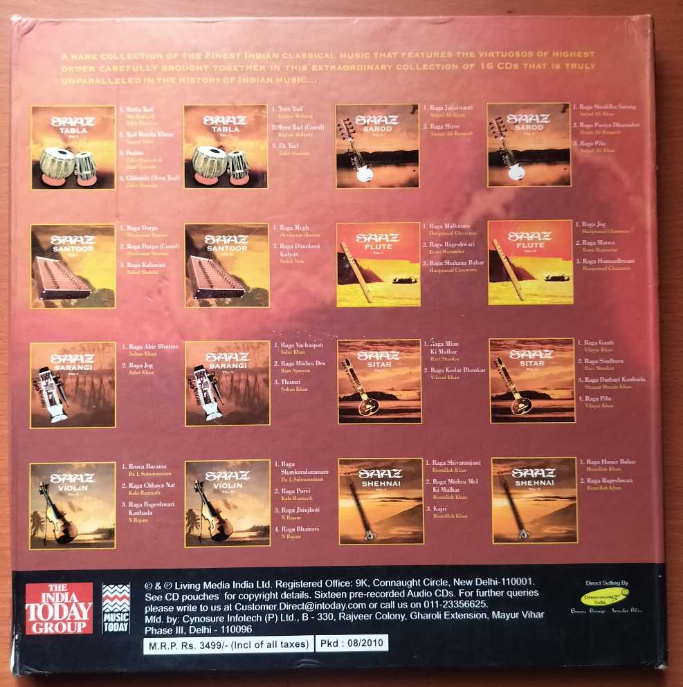 SAAZ A TIMELESS CELEBRATION OF INDIAN CLASSICAL MUSIC – Indian Classical Instrumental Premium Edition 16CD Pack Audio Cd