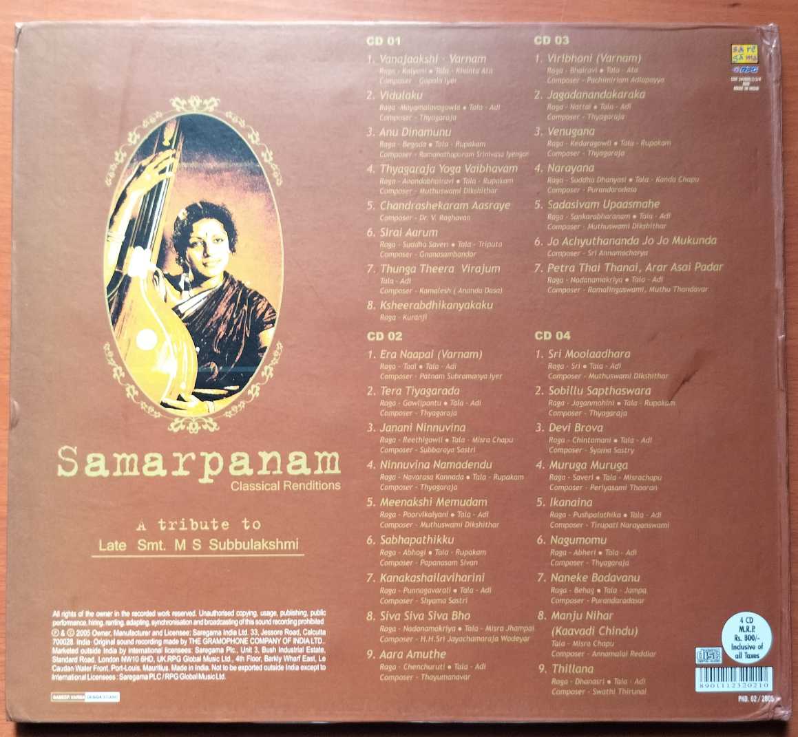 SAMARPANAM CLASSICAL RENDITIONS – M.S. Subbulakshmi Classical Carnatic Premium Edition 4CD Pack Audio Cd