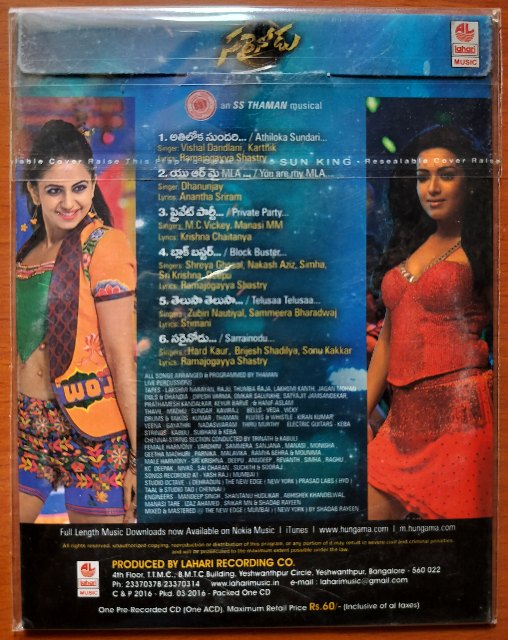 SARRAINODU – Thaman S Telugu Audio Cd (FACTORY SEALED PACK)