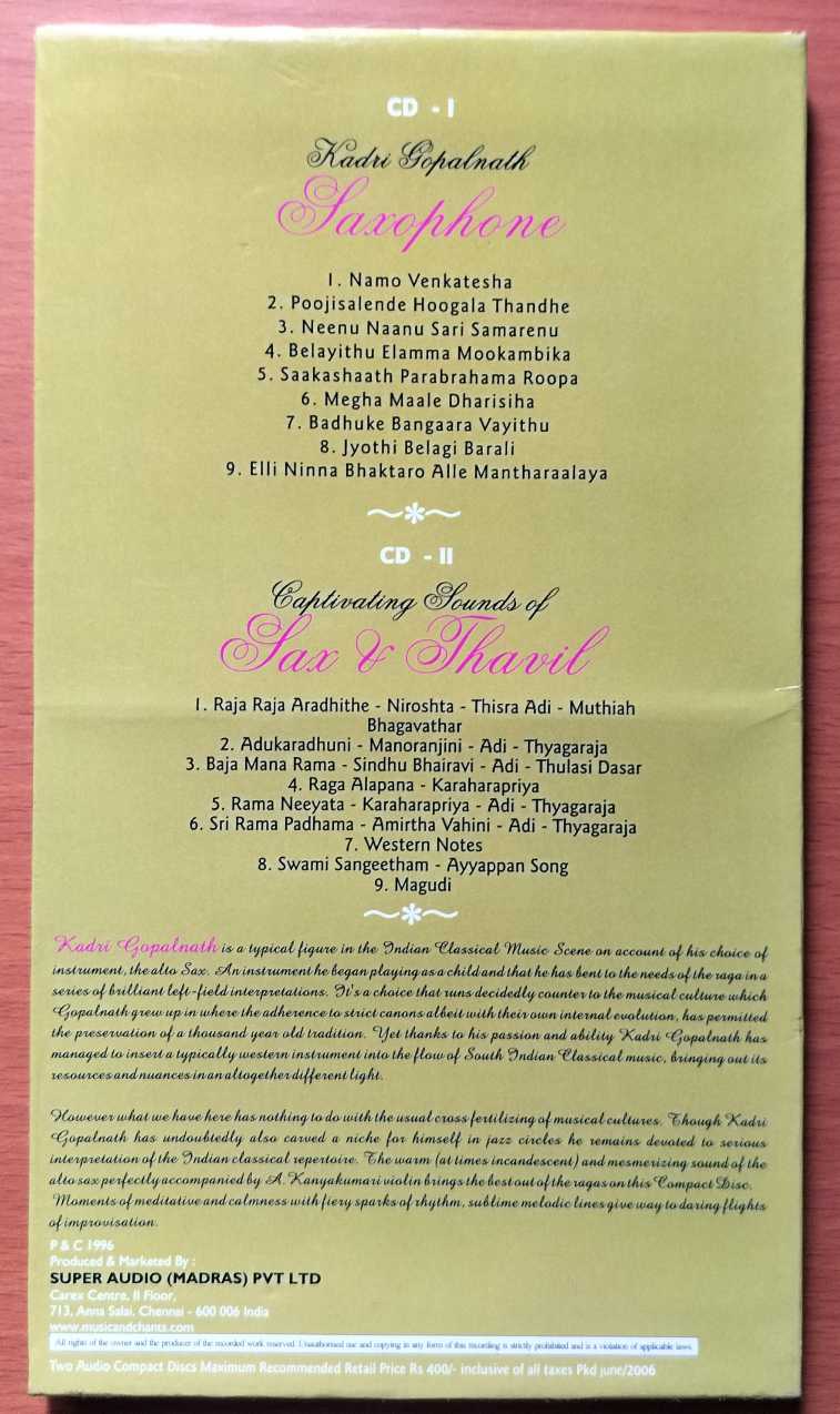 SAXOPHONE – Kadri Gopalnath Instrumental 2CD Premium Edition Pack Audio Cd